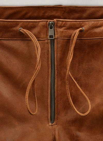 Men’s Cognac Leather Moto Trousers | Handcrafted Slim-Fit Leather Pants | Premium Tan Front-Zip Leather Leggings