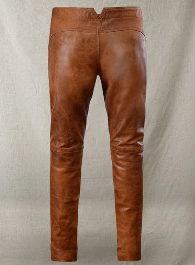 Women’s Cognac Leather Side-Buckle Trousers | Handcrafted Slim-Fit Leather Pants | High-Waisted Tan Moto Trousers